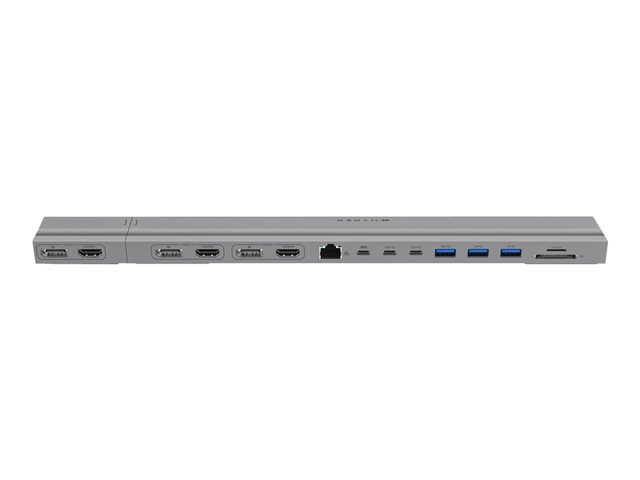Profitez de 15 ports essentielsExploitez la connectivité de votre Macbook 13"-16" avec 15 ports, dont HDMI 4K 60Hz x 3, DP 4K, 60Hz x 3, emplacements MicroSD/SD, Ethernet 1Gb, USB-C 10Gbps x 2, USB-C PD 100W, USB-A 10Gbps, et USB-A 5Gbps x 2.