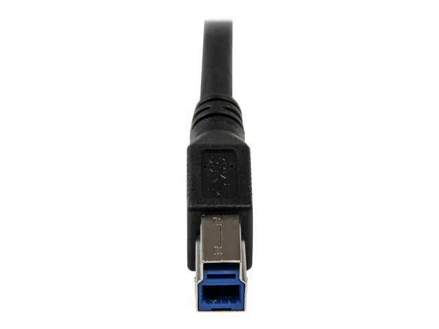 Le câble noir USB 3.0 A vers B 1 m USB3SAB1MRA comprend un connecteur mâle USB A à angle droit, vous permettant de connecter vos périphériques USB 3.0 B à votre ordinateur de bureau, ordinateur portable ou serveur, même dans les espaces réduits et difficiles d'accès.