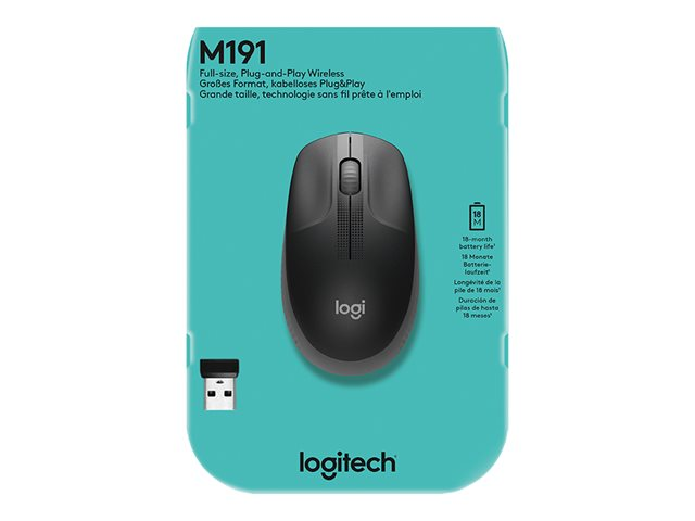 Logitech M190 est une souris sans fil de taille standard dotée d'une conception profilée confortable qui épouse la forme naturelle des mains de taille moyenne et de grande taille. Vous allez travailler sans fil et vous déplacer librement dans un rayon de 10 mètres 1 , sans délai ni interférences. Bénéficiez d'une qualité optimale avec une autonomie de 18 mois 2 , un suivi de précision et un défilement par palier à un prix abordable.