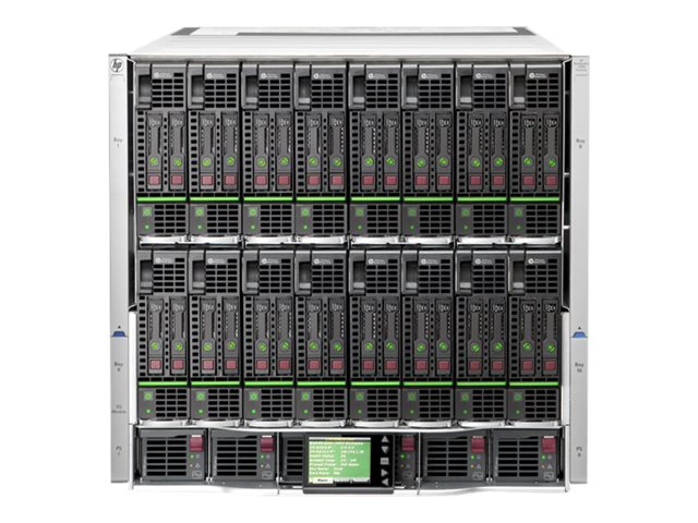 Le boîtier BladeSystem c7000 fournit toutes les infrastructures d'E/S et les systèmes de refroidissement et d'alimentation nécessaires pour prendre en charge le serveur modulaire, l'interconnexion et les composants de stockage actuels et futurs. Le boîtier a une hauteur de 10 U et peut contenir jusqu'à 16 lames de serveur et/ou de stockage en plus de modules réseau et d'interconnexion de stockage redondants facultatifs. Il comprend un fond de panier NonStop hautes performances partagé de 7,1 Tb/s pour une connexion des lames de serveurs au réseau et au système de stockage partagé câblée en une seule fois. L'alimentation est assurée par un fond de panier à alimentation groupée. La flexibilité de l'alimentation est assurée grâce aux différentes méthodes d'entrée d'alimentation suivantes : entrée CA monophasée, entrée CA triphasée, entrée CC de 48 V et entrée CC à haute tension.