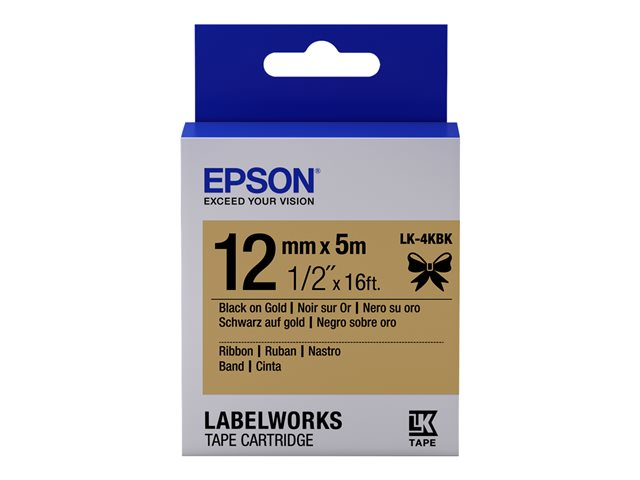 Noir sur or - Rouleau (1,2 cm x 5 m) 1 cassette(s) bande d'étiquettes - pour LabelWorks LW-1000, 300, 400, 600, 700, 900, K400, Z5000, Z5010, Z700, Z710, Z900