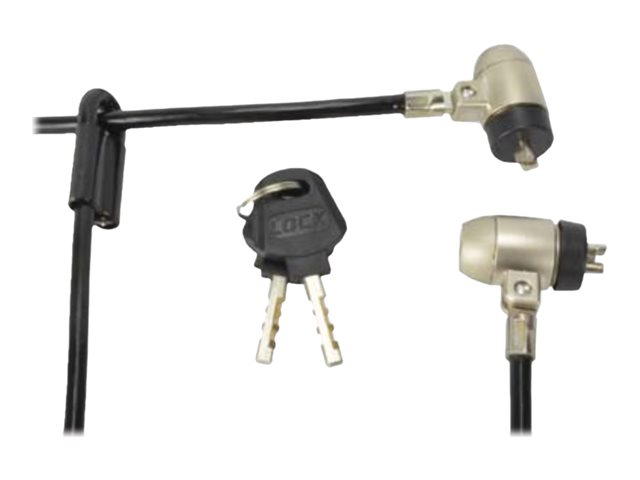 Antivol double à encoche pour les ordinateurs portables possédant une encoche de sécurité. Egalement utilisable avec les écrans plats ayant une encoche prévue à l'arrière. Il est constitué d'un câble de 1,80m sur lequel peut coulisser un autre câble de 0.4m afin de sécuriser deux matériels.