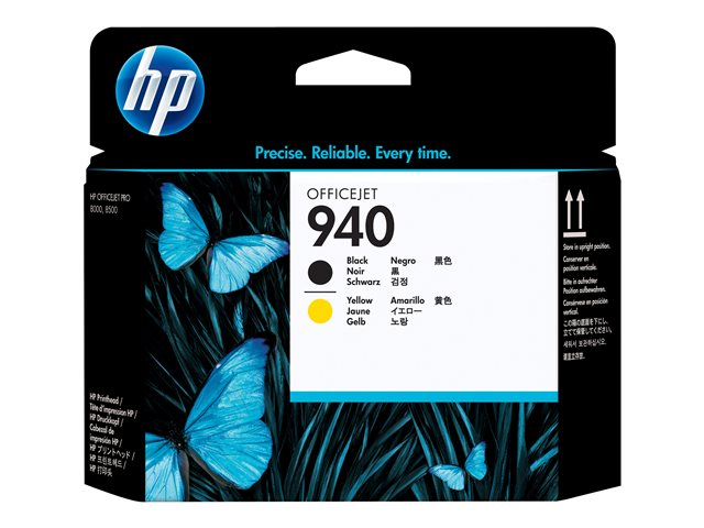 Têtes d'impression noire et jaune HP 940 Officejet conçues pour fonctionner exclusivement avec les cartouches d'encre HP 940 Officejet afin de garantir des impressions fiables et homogènes pendant toute la durée de vie de votre imprimante.