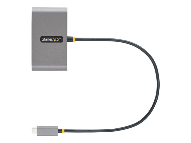 Ce hub USB-C avec passeur USB Power Delivery 100W ajoute quatre ports USB 3.2 Gen 1 (5Gbps) (2x USB-A, 2x USB-C) à un ordinateur compatible USB-C. Connectez le hub USB à un port USB-C sur un ordinateur portable, à l'aide du câble hôte USB-C intégré de 30 cm. Chargez un ordinateur portable hôte en connectant l'alimentation USB-C de l'ordinateur portable hôte au port USB Power Delivery (PD) 3.0. La rétrocompatibilité avec les périphériques USB 2.0 (480Mbps) garantit la prise en charge d'une large gamme de périphériques USB modernes et anciens (par exemple, les périphériques de stockage externes - clés USB, disques durs/SSD, caméras HD, souris, claviers, webcams et casques audio). Le hub USB prend en charge Wake on USB et est de taille compacte, ce qui facilite la portabilité lors des déplacements.