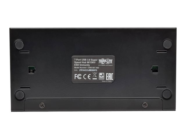 Description du produit Tripp Lite 7-Port USB 3.0 Hub SuperSpeed with Dedicated 2A USB Charging iPad Tablet Metal - concentrateur (hub) - 7 ports Type de périphérique Concentrateur (hub) - 7 ports Sous-type USB Ports 7 x SuperSpeed USB 3.0 Caractéristiques Protection contre les surtensions, montage mural possible, protection de la décharge électrostatique de 15 kV, protection de surintensité, robuste, fixation sur rail DIN possible, boîtier métallique Normes de conformité USB 1.1, USB 2.0, USB 3.0 Dimensions (LxPxH) 17.27 cm x 10.92 cm x 6.35 cm Garantie du fabricant Garantie de 3 ans -