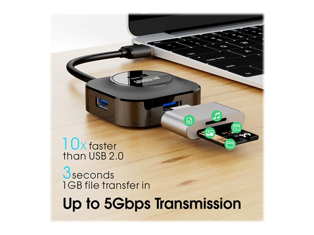 Ce hub USB 4 ports est un réplicateur de port haute vitesse avec un taux de transfert allant jusqu'à 480Mbps. Le hub est ultra compact et transportable facilement.