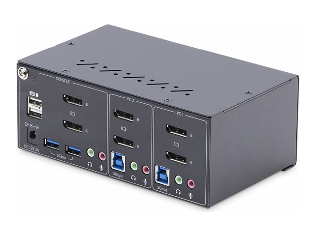 StarTech.com 2-Port Dual-Monitor DisplayPort KVM Switch, 4K 60Hz, 2x USB 5Gbps Hub Ports, 2x USB 2.0 HID Ports, Hotkey and Push-Button Switching, TAA Compliant