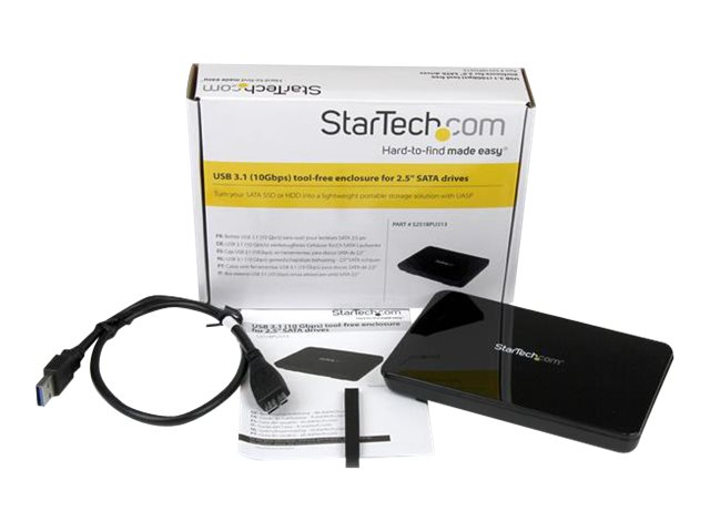 Où que vous alliez, accédez à vos données comme jamais auparavant. Ce boîtier USB 3.1 Gen 2 (10 Gb/s) pour SSD ou disque dur de 2,5 pouces constitue une solution de stockage externe portable et ultrarapide. Léger, s'installe sans outil, plus portable Fait d'un revêtement durable et léger, ce boîtier qui se glisse facilement dans un sac d'ordinateur portable ou un étui de transport constitue une solution de stockage portable. Et comme aucun outil n'est nécessaire pour l'installer, vos lecteurs seront rapidement fonctionnels. Profitez de la rapidité de l'USB 3.1 Gen 2 Avec ses transferts pouvant atteindre 10 Gb/s, soit deux fois la vitesse de l'USB 3.0 (USB 3.1 Gen 1), l'USB 3.1 Gen 2 est synonyme d'augmentation de la bande passante et de la vitesse. Il vous permet de profiter des qualités exceptionnelles des tout derniers modèles de SSD et de HDD, tout en réduisant le ralentissement du transfert de données. Alimentation directe par port USB Rien de plus facile que de brancher le boîtier à un ordinateur hôte, sans recours à une alimentation externe. Il est accompagné d'un câble USB-A vers Micro-B rétrocompatible avec les ports ou équipements USB existants. Il prend également le protocole UASP en charge, ce qui améliore encore les résultats. Le modèle S251BPU313 bénéficie de la garantie StarTech.com de 2 ans et de l'assistance technique à vie gratuite.