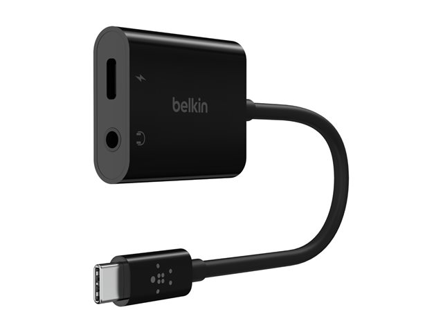 Belkin RockStar - USB-C vers jack de casque / adaptateur de charge - 24 pin USB-C mâle pour jack mini, 24 pin USB-C femelle - 19.6 cm - USB Power Delivery (60W) NPA004BTBK