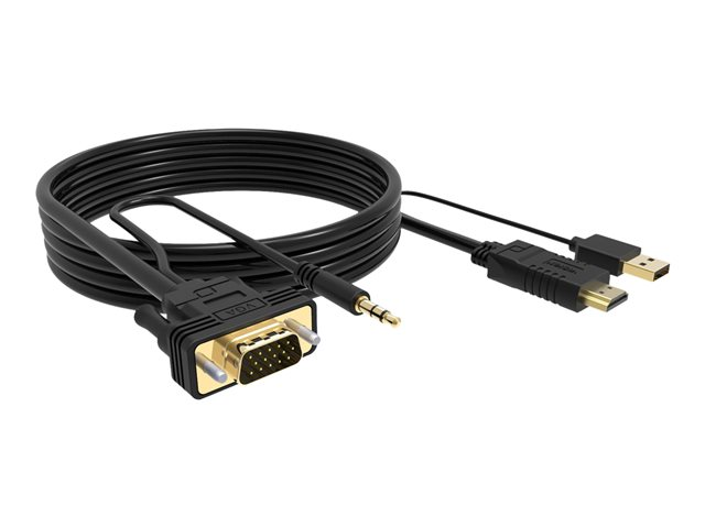VISION Techconnect - Câble vidéo/audio - HDMI, USB (alimentation uniquement) mâle pour HD-15 (VGA), mini-phone stereo 3.5 mm mâle - 2 m - noir - alimentation USB
