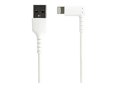 StarTech.com Câble USB-A vers Lightning Blanc Robuste 2m Coudé à 90° - Câble de Charge/Synchronisation USB Type A vers Lightning en Fibre Aramide Résistante - Apple MFi - iPhone (RUSBLTMM2MWR) - Câble Lightning - Lightning mâle incliné pour USB mâle - 2 m - double blindage - blanc
