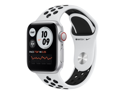 Apple Watch Nike SE (GPS + Cellular) - 40 mm - aluminium argenté - montre intelligente avec bracelet sport Nike - fluoroélastomère - platine pure/noir - taille du bracelet : S/M/L - 32 Go - Wi-Fi, Bluetooth - 4G - 30.68 g MYYW2NF/A
