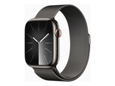 Apple Watch Series 9 (GPS + Cellular) - 45 mm - acier inoxydable graphite - montre intelligente avec boucle milanaise - 64 Go - Wi-Fi, LTE, UWB, Bluetooth - 4G - 51.5 g