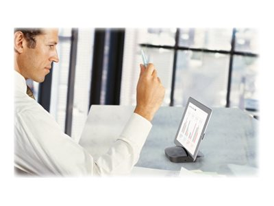 Transformez instantanément n'importe quel espace de travail en une salle de conférences. Le module mains libres Logitech Mobile Speakerphone P710e vous permet de passer des appels mains libres et vous offre une grande qualité audio sur téléphone ou tablette. La technologie anti-parasite garantit que tout le monde entend et est entendu. Couplez jusqu'à huit dispositifs Bluetooth ou connectez-les grce à la technologie NFC d'une simple pression sur le P710e. Organisez votre prochaine conférence pratiquement n'importe où.