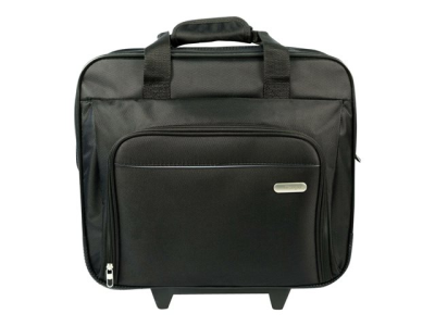 La mallette Targus Rolling Laptop Case a ete concue pour recevoir des ordinateurs portables equipes d'un ecran allant jusqu'a 16". Le rembourrage en mousse a cellules fermees protege votre ordinateur portable et le materiau en polyester 1200D durable et resistant a l'eau maintient vos affaires au sec dans les intemperies. Le poste de travail avant a fermeture eclair descendante comprend des porte-stylos, un porte-cartes de visite, une poche zippee, une pochette pour telephone portable et une grande poche pour ranger les autres accessoires. La mallette Rolling Laptop offre egalement un grand compartiment zippe pour ranger vos fournitures ou vos vetements pour les deplacements de courte de duree. La poignee telescopique se retracte dans le compartiment zippe quand elle n'est pas utilisee et la mallette est dotee d'une double poignee de transport pour plus de commodite. La Rolling Laptop Case est une mallette de voyage fonctionnelle concue pour les professionnels en deplacement.