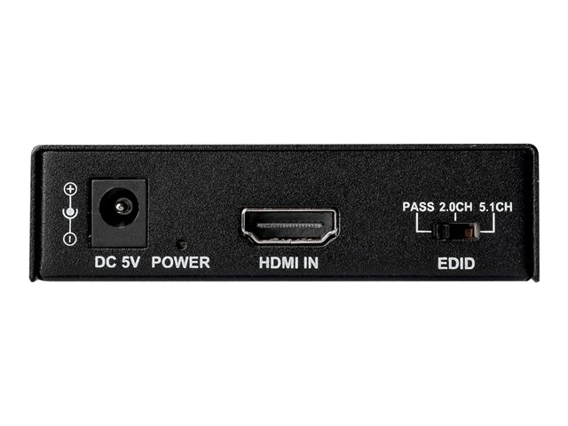 Intégrez facilement des appareils HDMI 2.0, tels que votre nouveau lecteur Blu-Ray 4K, à votre équipement audio existant ou à vos haut-parleurs de bureau. L''extracteur isole et extrait le signal audio de votre câble HDMI et vous permet de le transférer vers des appareils audio optiques numériques ou double RCA. Les fonctions de gestion des données EDID intégrées prennent en charge les modes audio à 2 et 5.1 voies et passthrough.