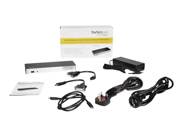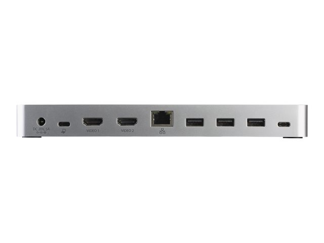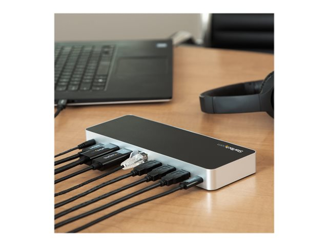 Améliorez votre productivité en transformant votre ordinateur portable USB-C Windows en poste de travail complet. Cette station d'accueil USB-C double affichage permet de connecter facilement deux écrans HDMI ou DVI (avec adaptateurs inclus) à l'aide d'un câble USB-C, sans avoir à configurer de pilotes graphiques dès la sortie de l'emballage. La station d'accueil USB-C génère une puissance de charge de 60 W et intègre cinq ports USB 3.0 pour connecter des appareils. Grâce à la simplification de la configuration de deux écrans, elle est idéale pour une utilisation massive dans un environnement bureautique.