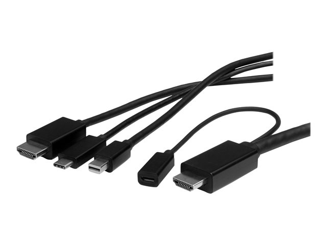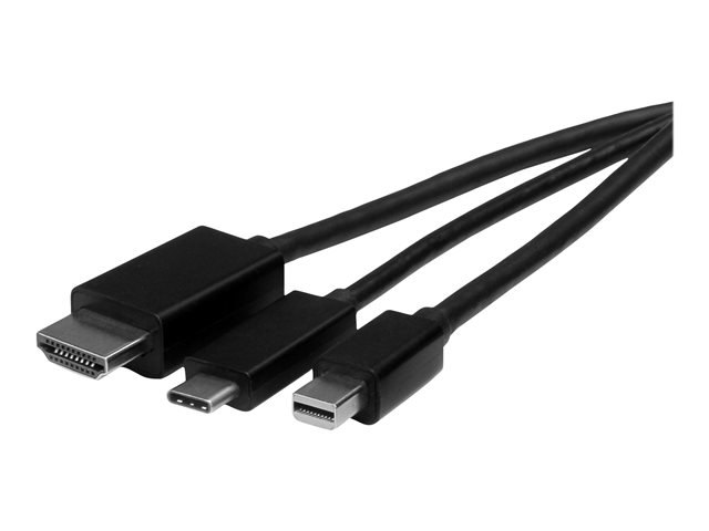StarTech.com Câble adaptateur USB-C, HDMI ou Mini DisplayPort vers HDMI de 2 m - Convertisseur 3-en-1 USB Type-C HDMI Mini DP vers HDMI - Câble adaptateur - HDMI, Mini DisplayPort, 24 pin USB-C mâle pour HDMI, Micro-USB de type B (alimentation uniquement) - 2 m - noir - support 4K, alimentation USB, passif