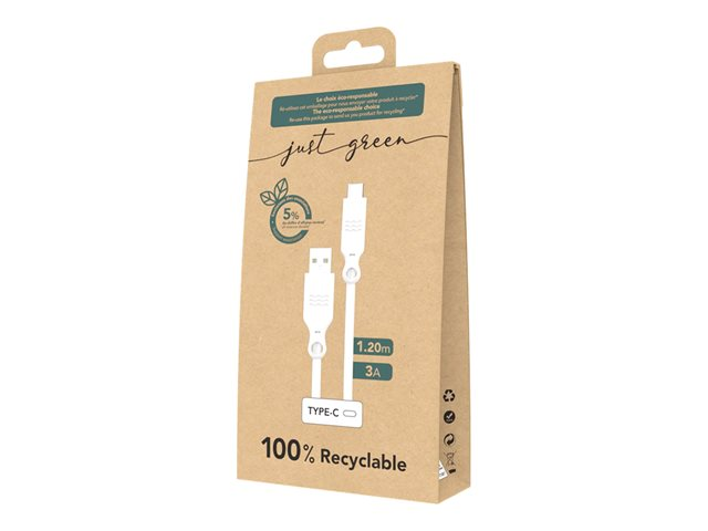 Just Green - Câble USB - USB (M) pour 24 pin USB-C (M) - 3 A - 1.2 m - blanc