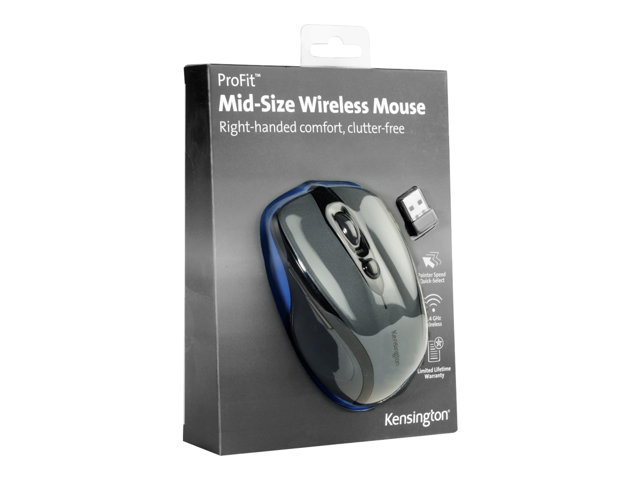 Kensington Pro Fit Mid-Size - Souris - pour droitiers - optique - 5 boutons - sans fil - 2.4 GHz - récepteur sans fil USB - gris graphite K72423WW