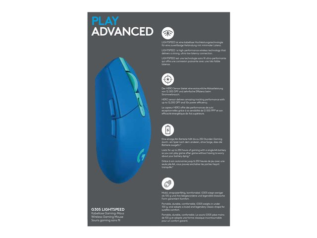 Dotée des dernières innovations technologiques, la souris gaming sans fil G305 LIGHTSPEED affiche des performances incomparables à un prix abordable. Maintenant disponible dans une variété de couleurs éclatantes.