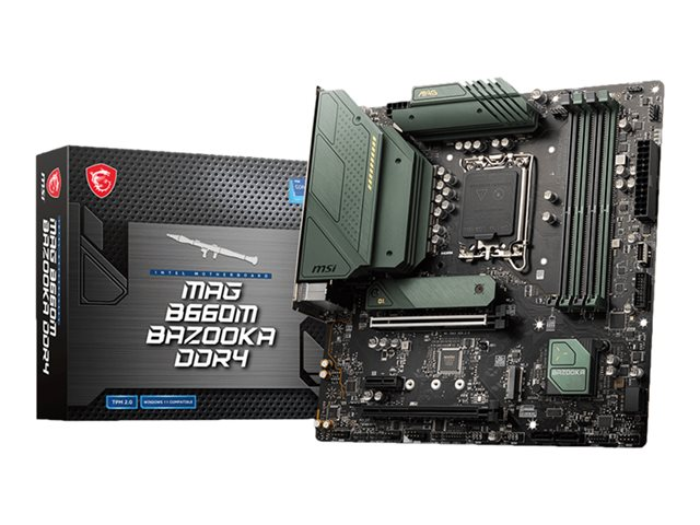 MSI MAG B660M BAZOOKA DDR4 - Carte-mère - micro ATX - Socket LGA1700 - B660 Chipset - USB-C Gen1, USB 3.2 Gen 1, USB 3.2 Gen 2 - 2.5 Gigabit LAN - carte graphique embarquée (unité centrale requise) - audio HD (8 canaux) MAG B660M BAZOOKA DDR4