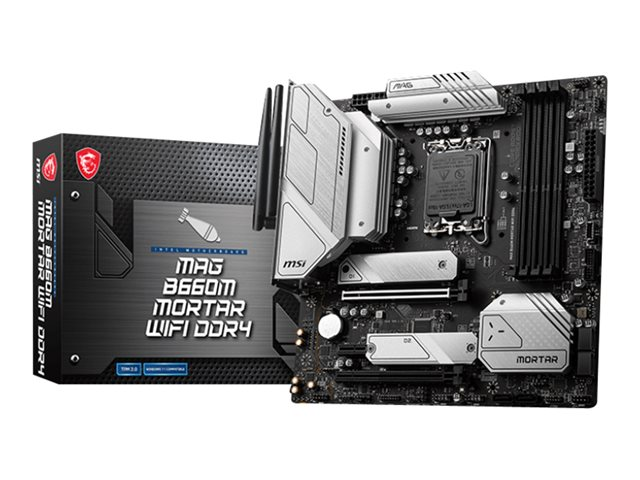 MSI MAG B660M MORTAR WIFI DDR4 - Carte-mère - micro ATX - Socket LGA1700 - B660 Chipset - USB-C Gen2, USB 3.2 Gen 1, USB 3.2 Gen 2, USB-C Gen 2x2 - 2.5 Gigabit LAN, Wi-Fi 6, Bluetooth - carte graphique embarquée (unité centrale requise) - audio HD (8 canaux) MAG B660M MORTAR WIFI DDR4