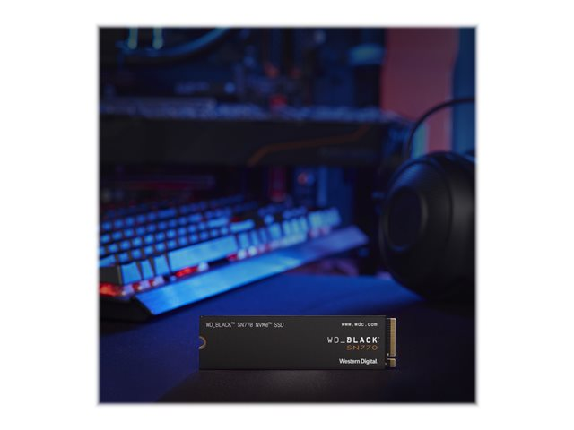 Plongez dans l'action dès maintenant avec le disque WD BLACK SN770 NVMe SSD. Ce disque conçu spécialement pour le gaming est doté d'une interface PCIe Gen 4 offrant des vitesses élevées.