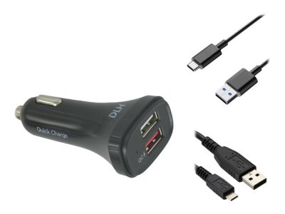 DLH DY-AU2861B - Adaptateur d'alimentation pour voiture - 20 Watt - 3 A - QC 3.0 - 2 connecteurs de sortie (USB) - noir
