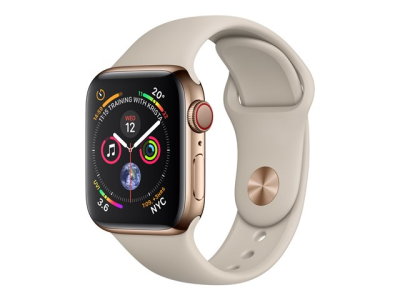 Apple Watch Series 4 (GPS + Cellular) - 40 mm - acier inoxydable doré - montre intelligente avec bande sport - fluoroélastomère - pierre - taille de bande 130-200 mm - 16 Go - Wi-Fi, Bluetooth - 4G - 39.8 g