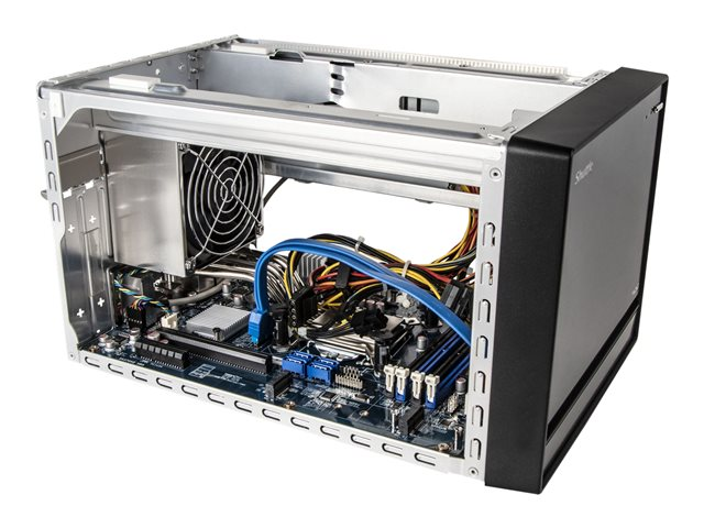 Le boîtier en aluminium brossé du XPC cube Barebone SH370R8 accueille jusqu'à quatre disques durs 3,5", offrant ainsi une grande capacité de stockage pour répondre aux besoins les plus variés. Que ce soit pour des applications professionnelles ou pour le gaming, le format R8 propose un maximum de performances et de fonctionnalités.