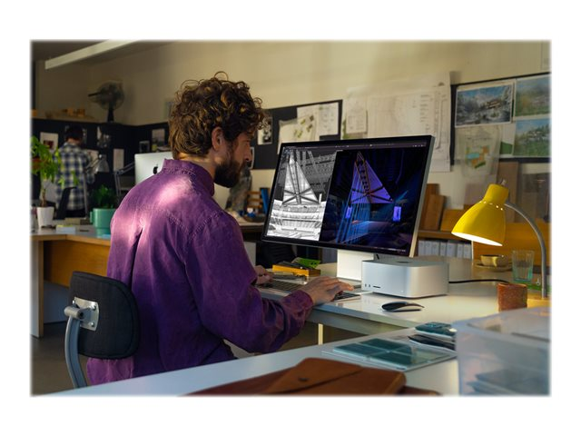 Construit à partir de deux puces M2 Max, le M2 Ultra vous permet de réaliser des flux de travail à une échelle sans précédent. Ainsi, vous pouvez rapidement transcoder et exporter des vidéos, exécuter des simulations de particules complexes ou travailler avec des environnements 3D massifs qui étaient auparavant impossibles à rendre.